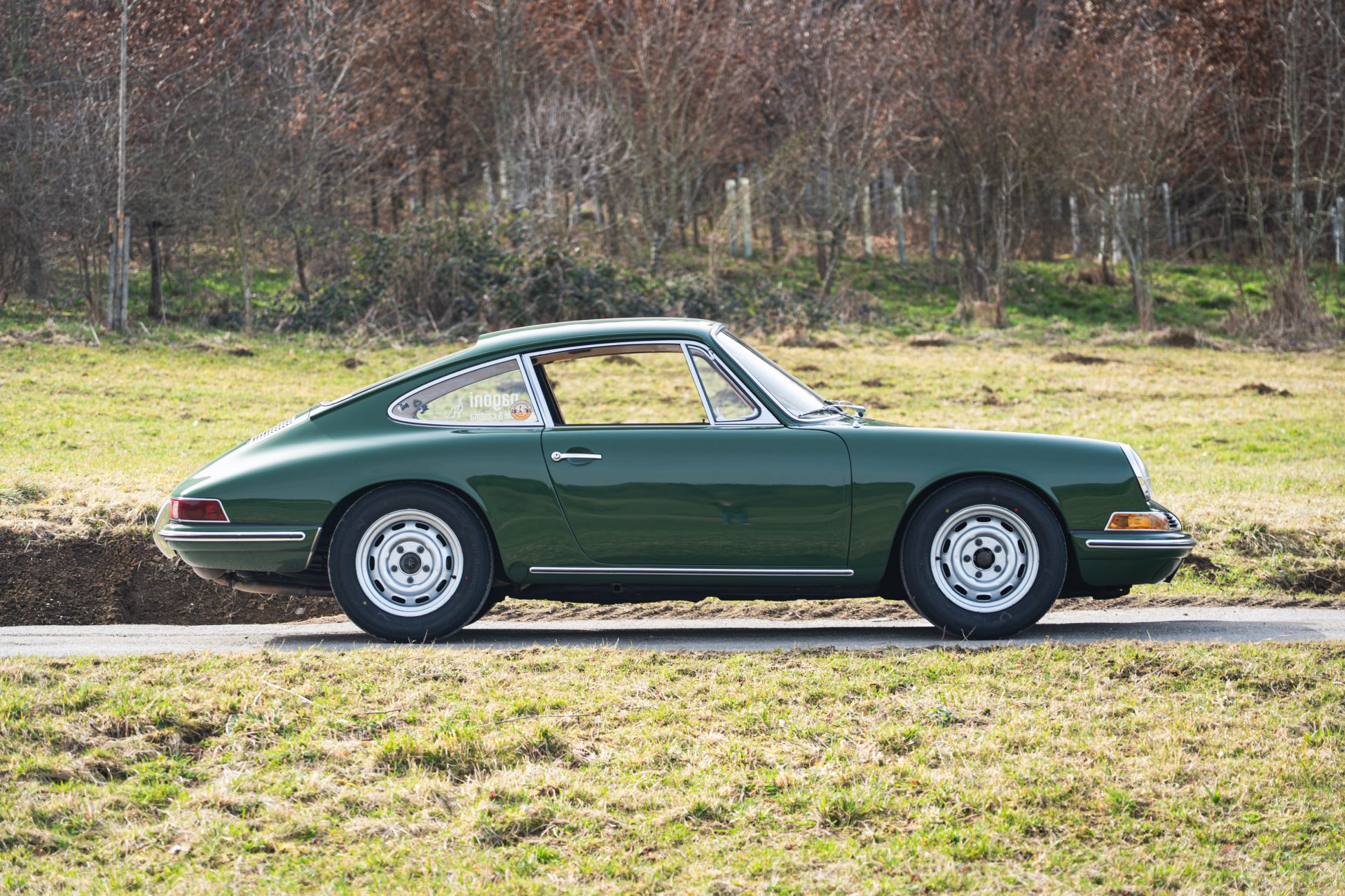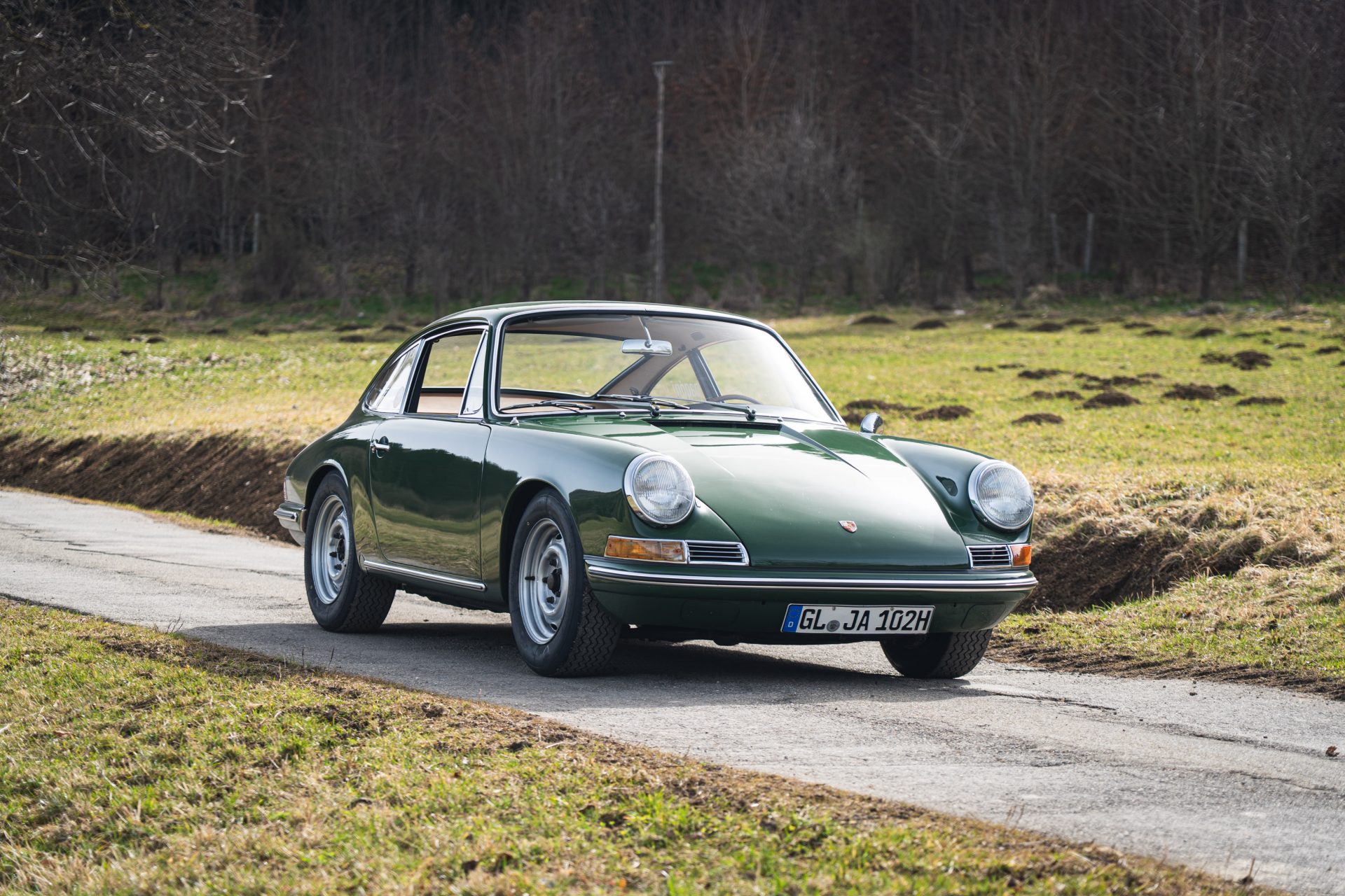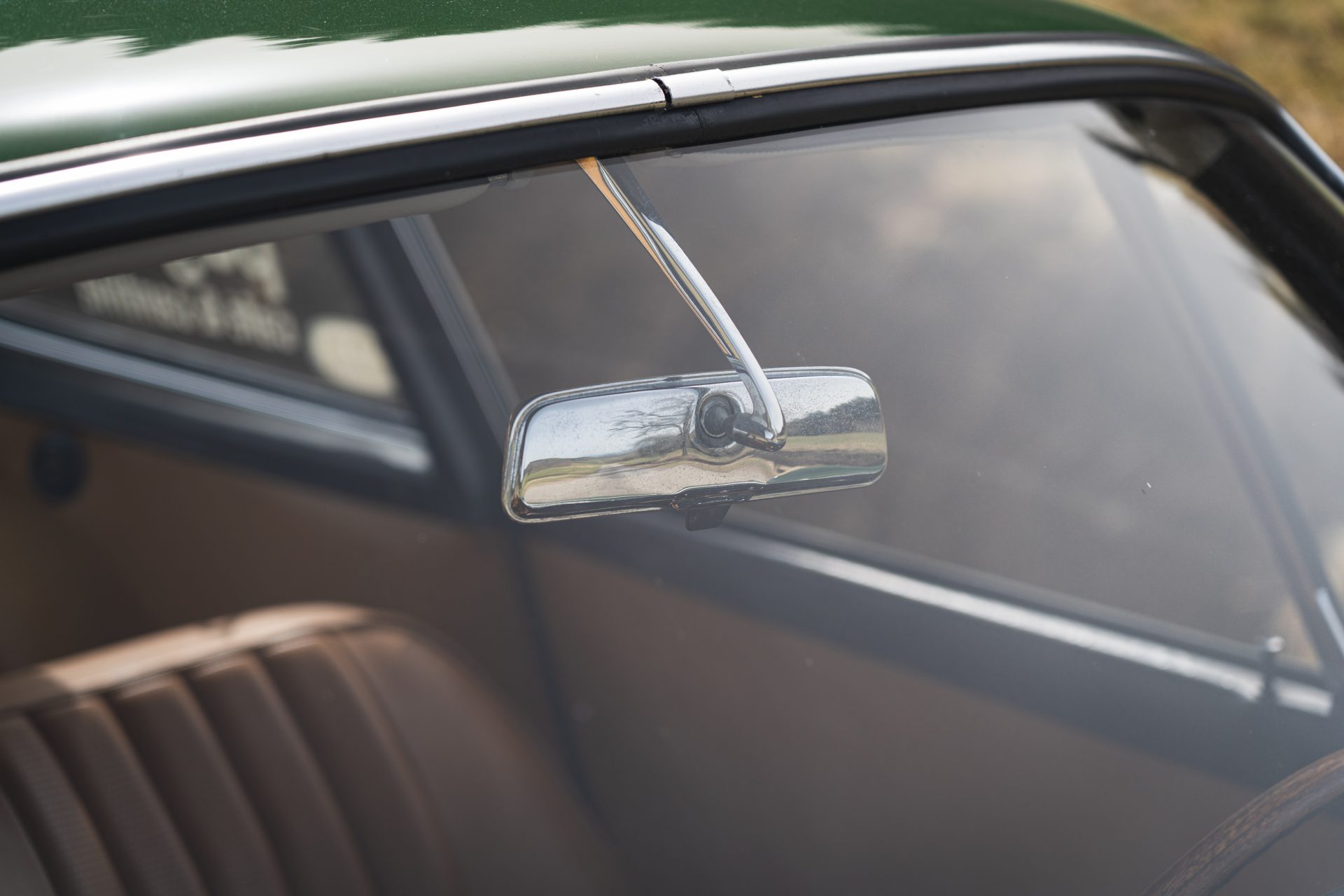 Das Interieur ist in einem sehr gepflegten Zustand und harmonisiert mit den Beige- und Brauntönen perfekt mit dem Außenlack in irischgrün. Das Holzlenkrad ist original. Regelmäßige Wartungen unterstreichen den sehr guten Zustand dieses Porsche 912, der für viel Fahrspaß bei seinem aktuellen Besitzer gesorgt hat.